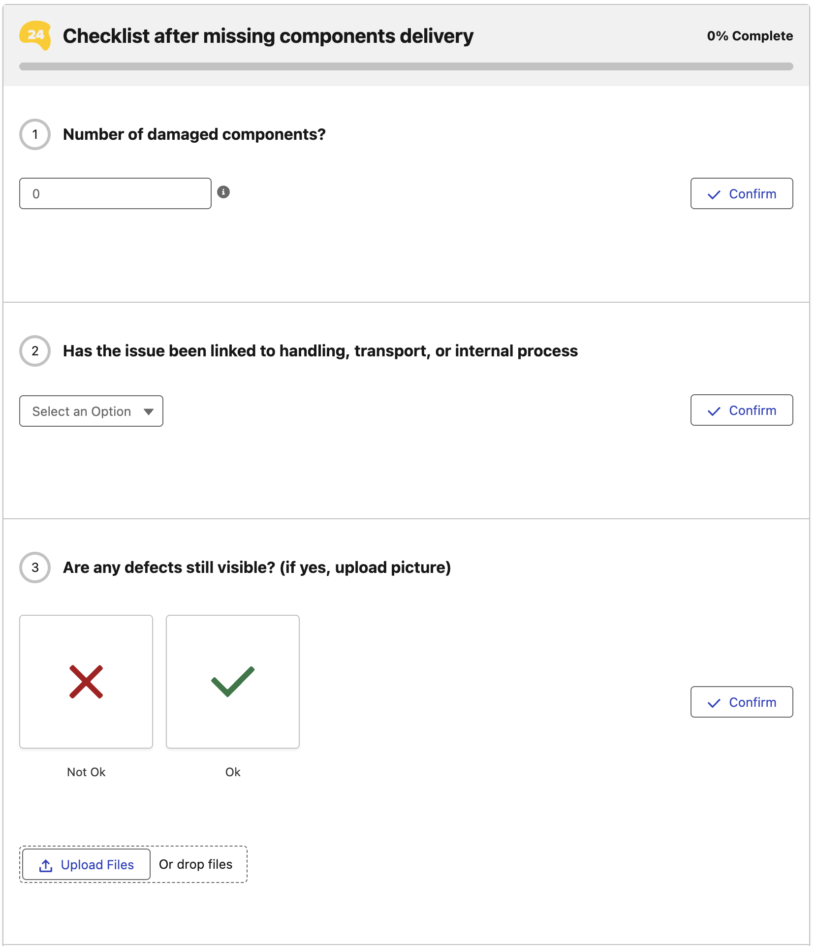 ✓ Controleer de onderdelen die nodig zijn om de order te voltooien en hun huidige beschikbaarheid.